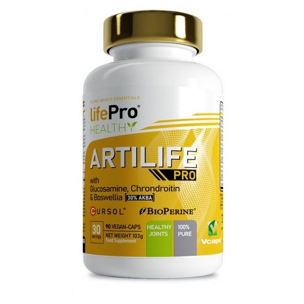 Artilife Pro de LifePro Nutrition es un suplemento en cápsulas vegetalesa base de glucosamina, condroitina, MSM, curcuma Cursol®, extracto de Boswellia y Bioperine®, que ha sido diseñado para para fortalecer los tejidos articulares, reducir la inflamación y mejorar la salud general de tus articulaciones.