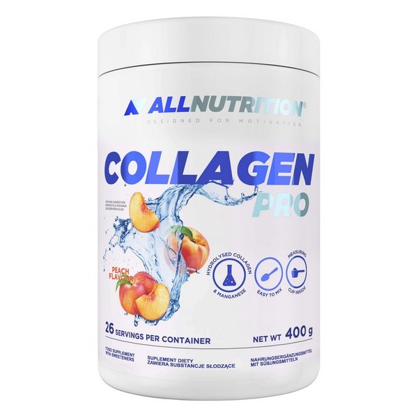 Collagen PRO de AllNutrition es un suplemento en polvo que contiene colágeno hidrolizado de la más alta calidad, extracto de Boswellia serrata, ácido hialurónico, sulfato de condroitina, sulfato de glucosamina, cúrcuma, además de vitaminas y minerales.