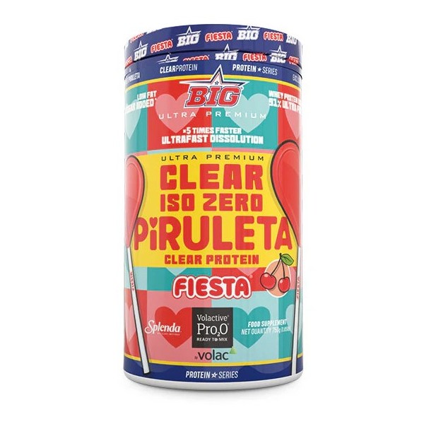Clear Iso Zero Piruleta de Big es un suplemento proteico en polvo desarrollado a partir de la exclusiva patente Volactive® Pro2O® Ready to Mix de Volac®, ahora con un nuevo sabor desarrollado en colaboración con Fiesta®.