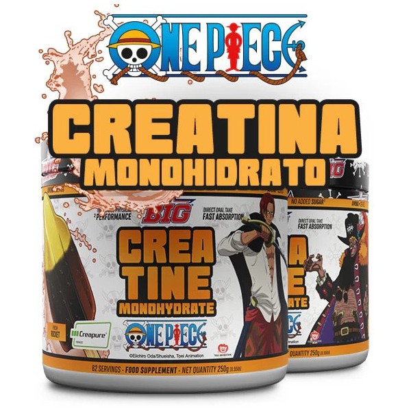 Creatina Monohidrato One Piece® es la nueva creatina monohidrato de BIG® en co-branding exclusivo con ONE PIECE®, el anime más icónico del planeta. Somos siendo la única marca de nutrición deportiva en España con este acuerdo de co-branding oficial, y eso lo cambia todo.