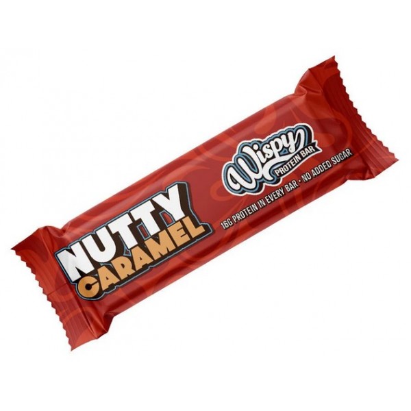 Wispy Protein Bar Nutty Caramel de Wispy Nutrition son unas deliciosas barritas altas en proteína con una irresistible cobertura de chocolate con leche y un sabor que no te dejará indiferente.
