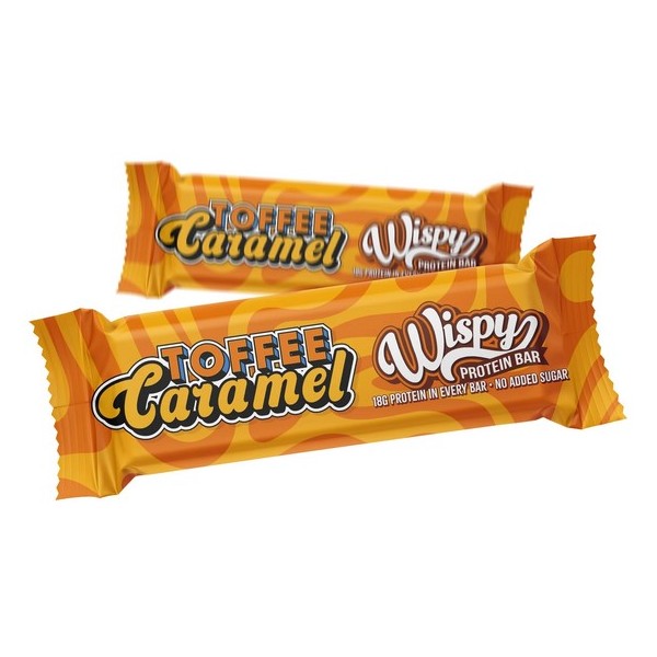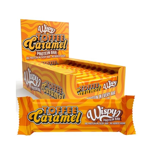 Wispy Protein Bar Toffee Caramel de Wispy Nutrition son unas deliciosas barritas altas en proteína con una irresistible cobertura de chocolate con leche y un sabor que no te dejará indiferente.