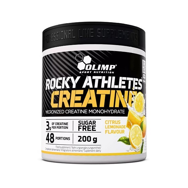 Rocky Athletes Creatine de Olimp® Sport Nutrition es un suplemento en polvo de alta calidad a base de monohidrato de creatina micronizado con magnesio y vitamina B6, formulado para quienes buscan mejorar su rendimiento físico, fuerza y recuperación muscular en entrenamientos de alta intensidad.