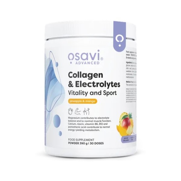Collagen & Electrolytes Vitality and Sports de Osavi es una fórmula avanzada diseñada especialmente para personas activas que desean mejorar su vitalidad, cuidar sus músculos y favorecer el rendimiento durante la actividad física.