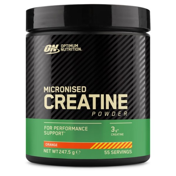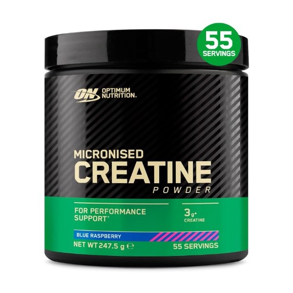 Micronised Creatine Powder de Optimum Nutrition es un suplemento en polvo que proporciona 100% creatina monohidrato micronizada de alta calidad con un delicioso y refrescante sabor a frambuesa azul, naranja o mezcla de frutas (fruit punch).