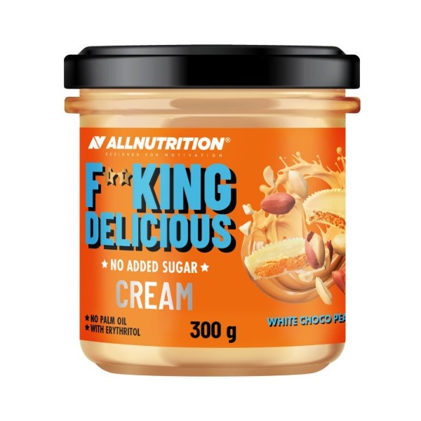 Fitking Delicious Cream White Choco Peanuts de AllNutrition es una deliciosa crema sin azúcares añadidos ni aceite de palma, endulzada con eritritol que te encantará y te perderás en su increíble sabor!