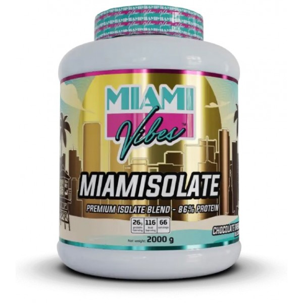 Miamisolate de Miami Vibes es un suplemento en polvo que contiene una proteína ultra pura y de rápida absorción, con un 87% de porcentaje proteico, elaborada con ingredientes premium para ofrecer máximo rendimiento, digestión ligera y un sabor irresistible en cada batido.