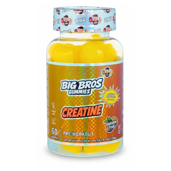 Creatine Gummies de Big Bros Gummies es un suplemento en forma de deliciosas gominolas que contienen 3 gramos de monohidrato de creatina por gominola.