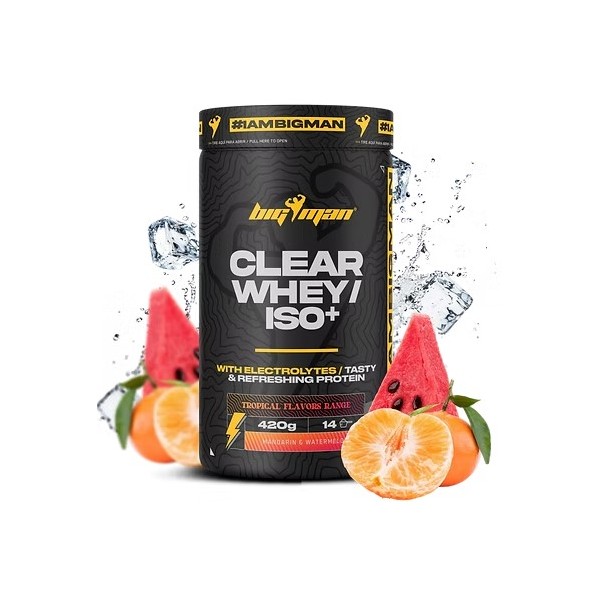 Clear Whey/ISO+ de BigMan es un suplemento de proteína innovador que rompe con el formato tradicional de batidos cremosos. Se trata de una bebida refrescante y ligera, similar a un zumo de frutas, formulada con aislado de proteína de suero de leche de alta pureza. Diseñada para quienes buscan una alternativa más fresca y digestiva, especialmente ideal para los meses de calor o después de entrenamientos intensos.
