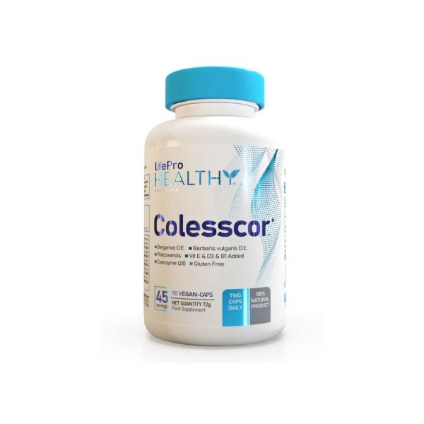 Colesscor de LifePro Nutrition es un suplemento en cápsulas vegetales diseñado para ayudarte a mantener el equilibrio natural del colesterol y los triglicéridos, actuando sobre distintas rutas del metabolismo de las grasas y promoviendo el buen estado de las arterias y una circulación saludable.