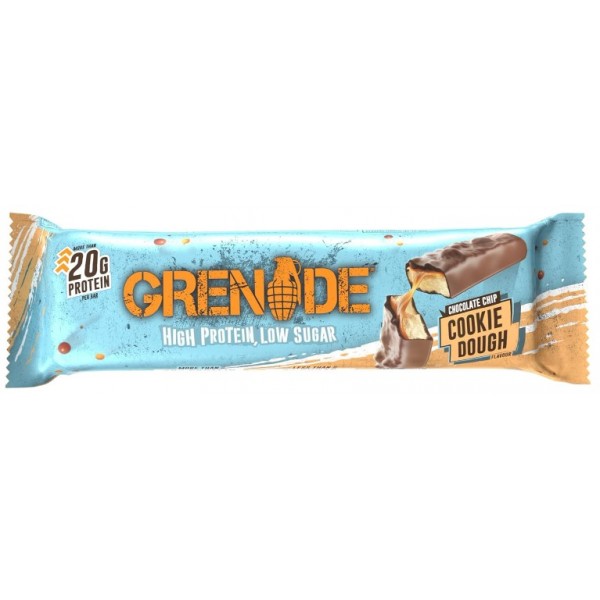 Grenade Chocolate Chip Cookie Dough de Grenade es una deliciosa barrita alta en proteína y baja en azúcar con un increíble sabor masa de galleta recién hecha con chips de chocolate.