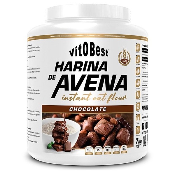 Harina de avena de Vitobest contiene harina de avena 100% integral e instantánea, disponible en los dos sabores que más gustan a todo el mundo: chocolate y galleta María.