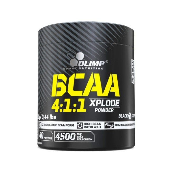 BCAA 4:1:1 Xplode Powder de Olimp Sport Nutrition es un suplemento en polvo que contiene aminoácidos ramificados con una relación 4:1:1 entre L-leucina, L-isioleucina y L-valina y en una forma altamente soluble.
