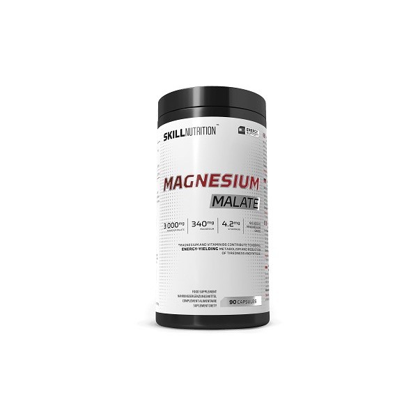 Magnesium Malate de Skill Nutrition es un suplemento dietético avanzado en cápsulas que combina 3000 mg de malato de magnesio (proporcionando 340 mg de magnesio elemental) con 4.2 mg de vitamina B6 en su forma bioactiva P-5-P (piridoxal-5'-fosfato).