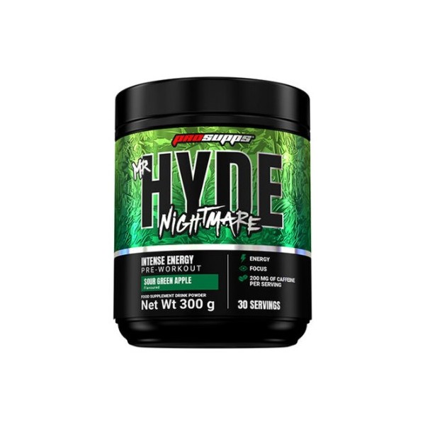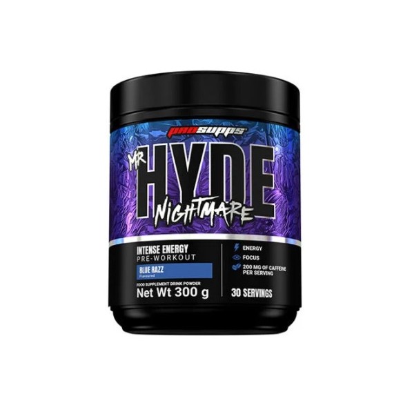 Mr Hyde Nightmare de Pro Supps es suplemento en polvo para tomar antes del entrenamiento diseñado para deportes que tienen una gran exigencia muscular y mental.