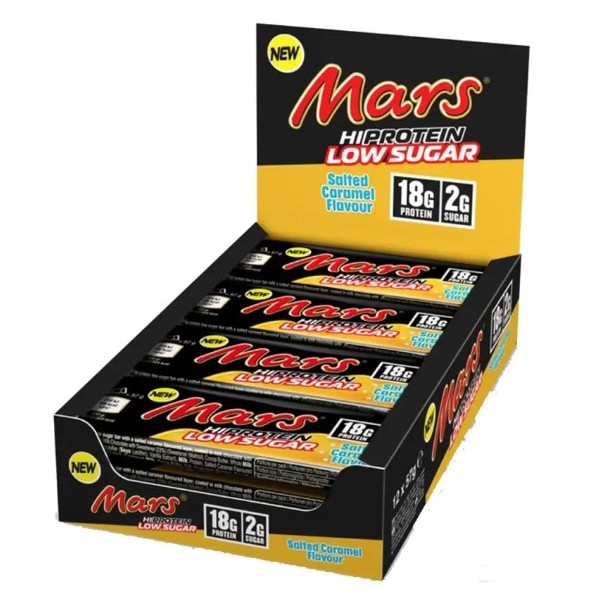 Las nuevas barritas Mars Hi Protein Low Sugar Salted Caramel de Mars Protein Bars son una versión fitness de las deliciosas barritas Mars de toda la vida enriquecidas con 20 gramos de proteína por unidad, con el sabor original de chocolate con caramelo de las barritas Mars.