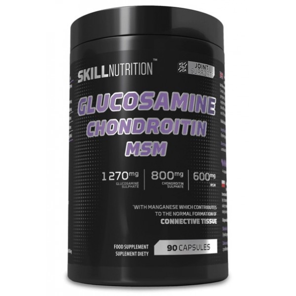 Glucosamine Chondroitin MSM de Skill Nutrition es una fórmula científicamente respaldada que combina 1270 mg de sulfato de glucosamina, 800 mg de sulfato de condroitina y 600 mg de MSM orgánico enriquecido con manganeso, diseñada específicamente para apoyar la salud del cartílago articular, reducir el dolor y la rigidez en las articulaciones, mejorar la movilidad, promover la formación normal de tejido conectivo y proteger el sistema musculoesquelético de personas activas, atletas y cualquier persona que desee mantener sus articulaciones saludables y funcionales durante toda su vida.