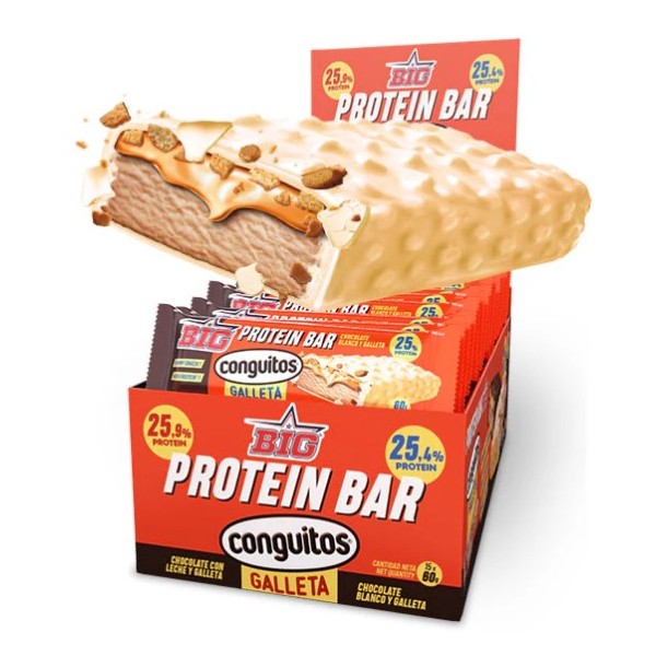 Redescubre todo el sabor de Conguitos® Galleta en esta nueva barrita on un contenido de proteína de la mejor calidad de mas del 25%. Además y como de costumbre, todos los productos BIG® poseen certificación GMP desde la trazabilidad de origen de las materias primas hasta la entrega a nuestros clientes.