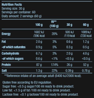 Contiene la proteína de carne bovina más eficaz y de mayor calidad de Europa, de fácil digestión, sin creatina, lactosa o soja añadida.