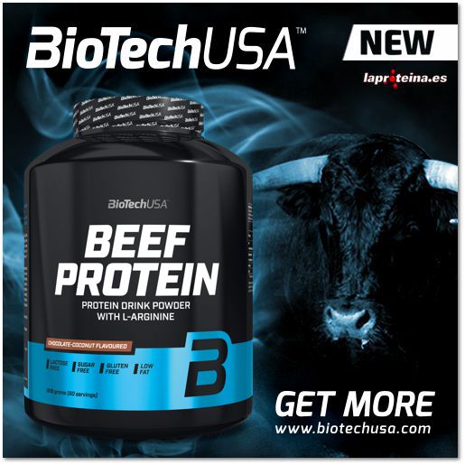 La nueva Beef Protein está potenciada con L-glutamina y arginina, no contiene creatina, lactosa o soja añadida y está basado en una fuente de proteína sin colesterol y de una pureza muy alta. Su alto contenido proteico contribuye al desarrollo y mantenimiento muscular, y su contenido natural de vitaminas y minerales consigue mejorar la absorción de los nutrientes.