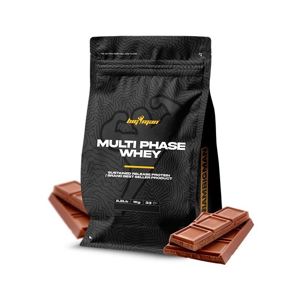 Multi-Phase Whey de BigMan Nutrition es un suplemento proteico en polvo que contiene una combinación de concentrado de proteína de suero de leche, hidrolizado de proteína de suero de leche y aislado de proteína de suero de leche (Arla®), diseñada para ser una de las proteínas de liberación gradual más deliciosas y efectivas del mercado.