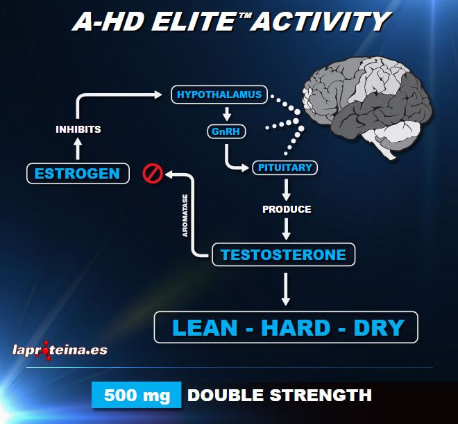 A-HD Elite™ es un nuevo compuesto potenciador de testosterona. La testosterona es la principal hormona sexual masculina y es altamente anabólica. Al favorecer la existencia de testosterona libre en el organismo, los culturistas pueden utilizar esta hormona para mejorar el crecimiento muscular, la densidad ósea y la fuerza.
