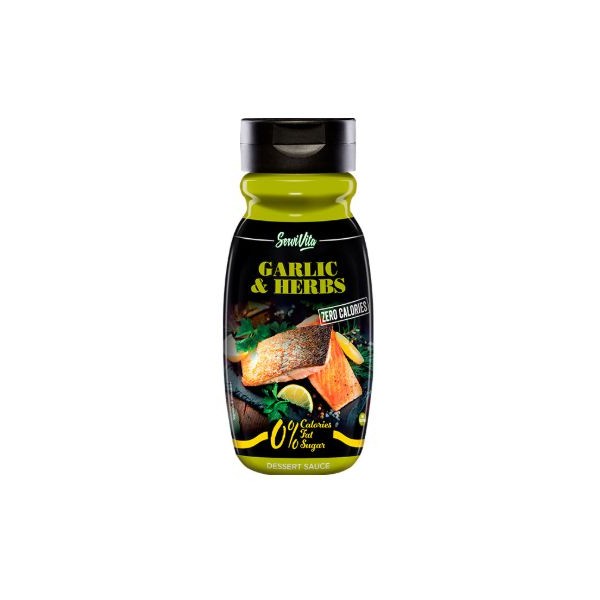 Garlic & Herbs de Servivita es una rica salsa sin calorías con un toquecito de ajo y con hierbas aromáticas ideal para tus platos de pescado o pasta, a los que darás un sabor y aroma intenso, pero sin sumar ni una sola caloría a tu línea.