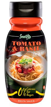 Salsa de Tomate y Albahaca de Servivita es una rica salsa sin calorías con el tradicional sabor mediterráneo a tomate con un toque de albahaca ideal para tus platos de pasta o carne, a los que darás un sabor y aroma intenso, pero sin sumar ni una sola caloría a tu línea.
