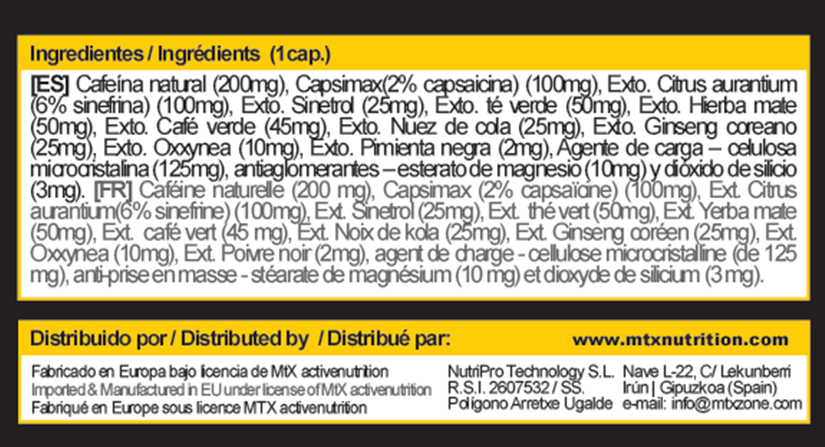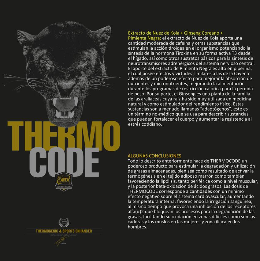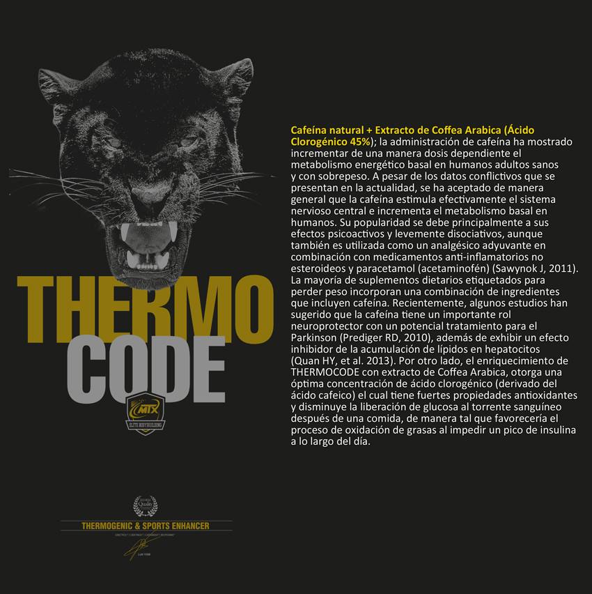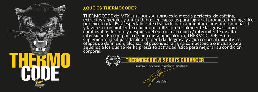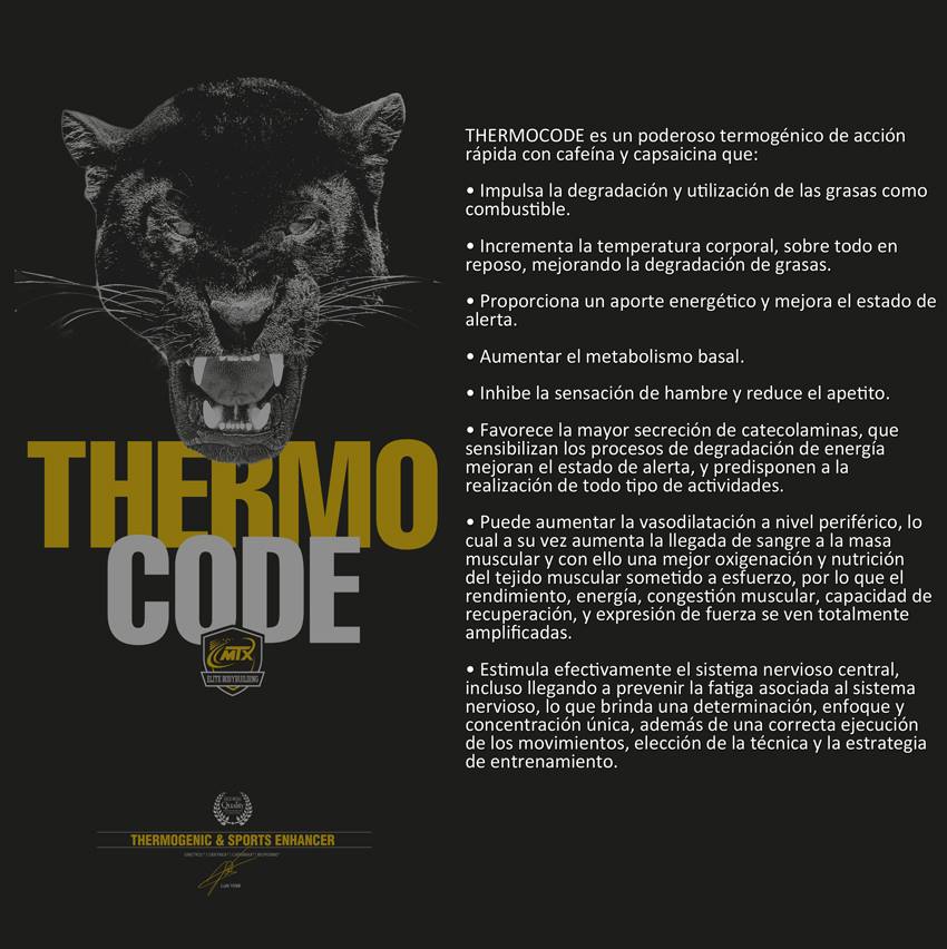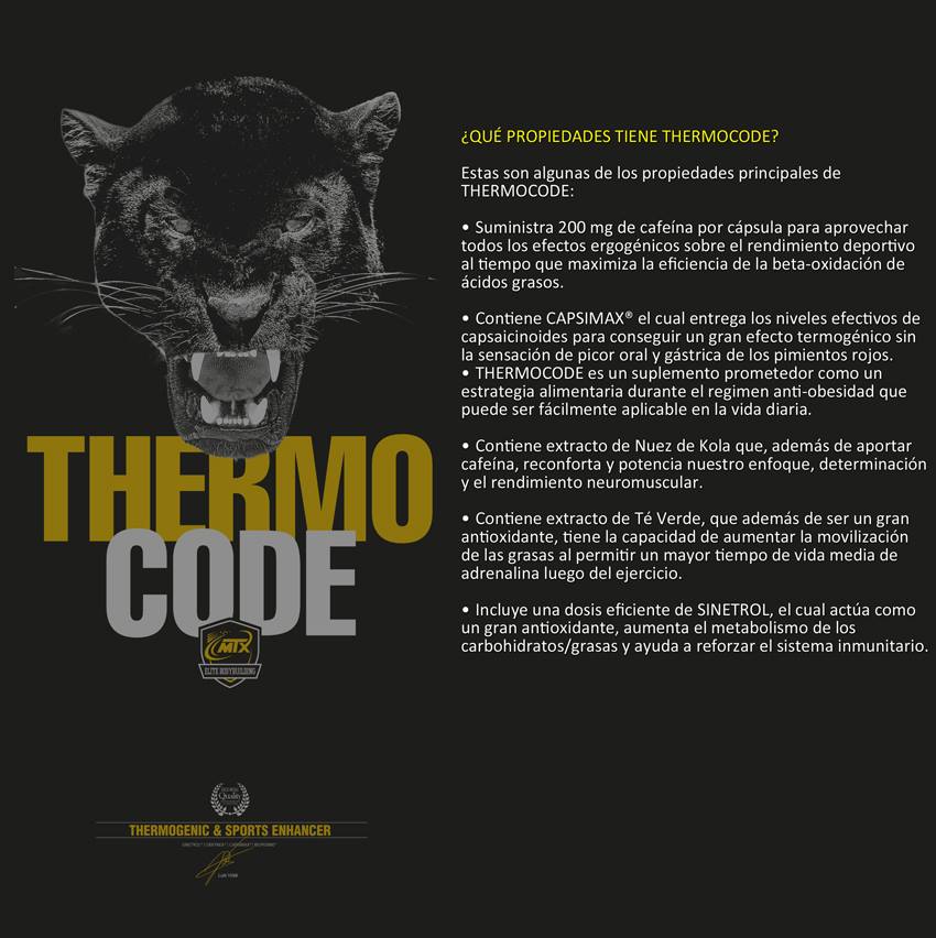 El nuevo ThermoCode de MTX Elite BodyBuilding es un termogénico en cápsulas que contiene una mezcla perfecta de cafeína, extractos vegetales y antioxidantes para lograr el suplemento termogénico más avanzado del mercado.
