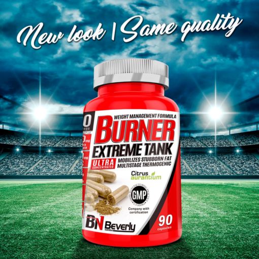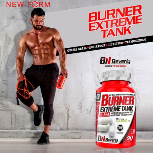 Burner Extreme Tank de Beverly Nutrition es una fórmula termogénica ultraconcentrada en cápsulas diseñada para movilizar y eliminar la grasa más obstinada a través de una combinación de 6 potentes compuestos.
