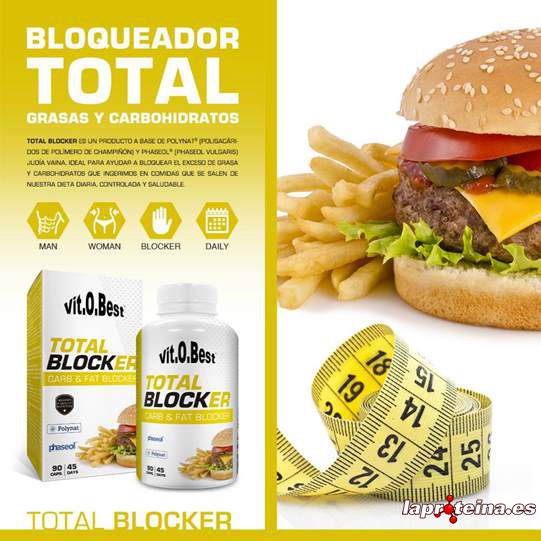 Total Blocker de Vitobest contiene una combinación de 900 mg de Phaseol® y 200 mg de Polynat® por dosis de dos cápsulas, que son dos extractos patentados y clínicamente probados que nos ayudarán a bloquear el exceso de carbohidratos y grasas que ingerimos en las comidas que se salen de nuestra dieta diaria, controlada y saludable.