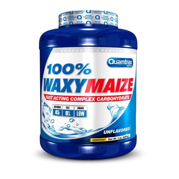100% WaxyMaize de Quamtrax Nutrition es un suplemento que contiene amilopectina (almidón de maíz ceroso) en polvo y con sabor.