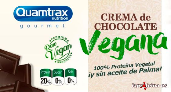 La Crema Choco Vegan Protein de Quamtrax Gourmet es una deliciosa crema de chocolate vegana elaborada con avellanas, proteínas de fuentes 100% vegetales, sin azúcares añadidos, que es perfecta para que la puedas disfrutar sin sentirte culpable por ello.