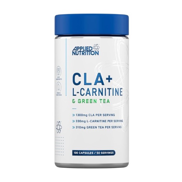 CLA + L-Carnitine & Green Tea de Applied Nutrition es un suplemento quemagrasas de fórmula triple que combina tres ingredientes clave para apoyar la pérdida de peso, el metabolismo energético y el control del peso corporal.