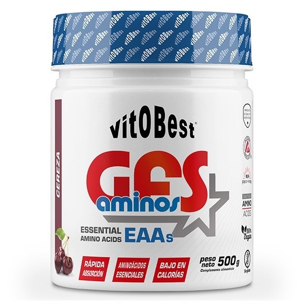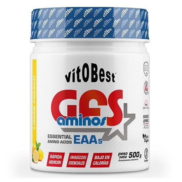 GFS Aminos de Vitobest es un suplemento en polvo que contiene una fórmula patentada de aminoácidos esenciales con mapa de absorción genética M.A.P., que son las siglas de patrón maestro de aminoácidos, es decir, la disposición de los 9 aminoácidos esenciales en las cantidades óptimas que perfectamente van a conseguir sustituir la ingesta de una comida proteica.