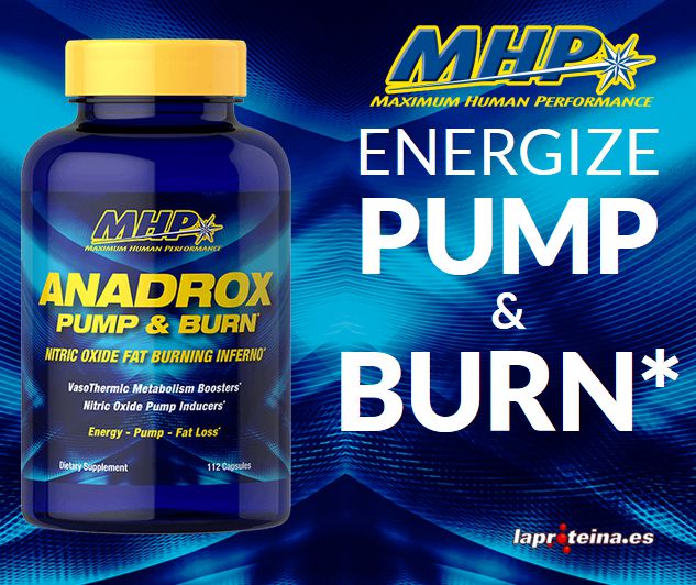 Anadrox Pump & Burn de MHP es el único suplemento disponible que aprovecha la vasodilatación muscular producida por el aumento de óxido nítrico (NO) para desarrollar más masa muscular, y definir el cuerpo, eliminando el exceso de grasa almacenada, y proporcionando al mismo tiempo más fuerza, energía, y resistencia a nuestro cuerpo.