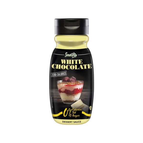 Sirope de Chocolate Blanco de Servivita es un rico sirope sin calorías con sabor a chocolate blanco ideal para añadir a helados, pasteles y postres de todo tipo, a los que darás un sabor delicioso, pero sin sumar ni una sola caloría a tu línea.