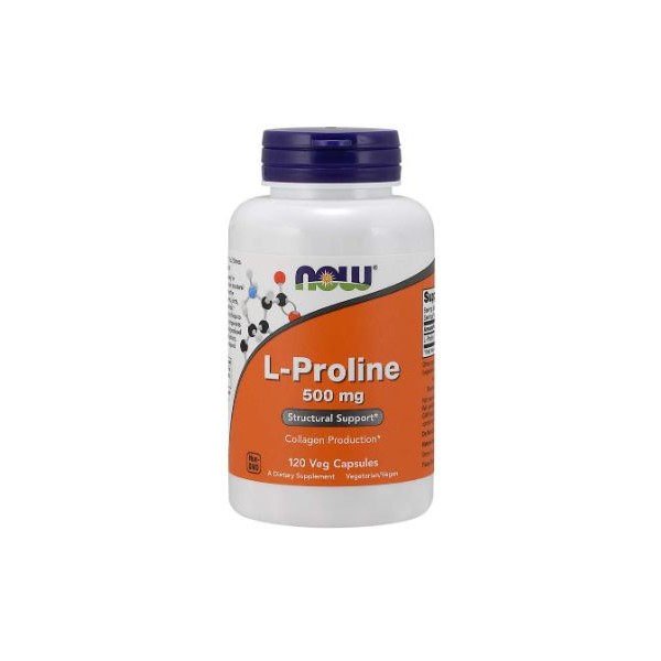 L-Proline de NOW Foods es un suplemento en cápsulas vegetales que proporciona 500 mg del aminoácido no esencial L-prolina por cápsula.