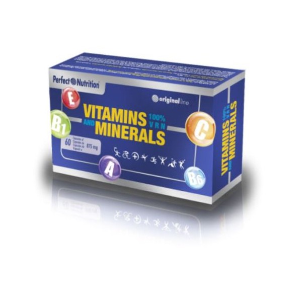 Vitamins and Minerals de Perfect Nutrition es un suplemento en cápsulas que nos proporciona una potente y completa combinación de vitaminas y minerales para asegurarnos que aportamos a nuestro cuerpo la cantidad diaria recomendada para mantener una nutrición adecuada de micronutrientes.
