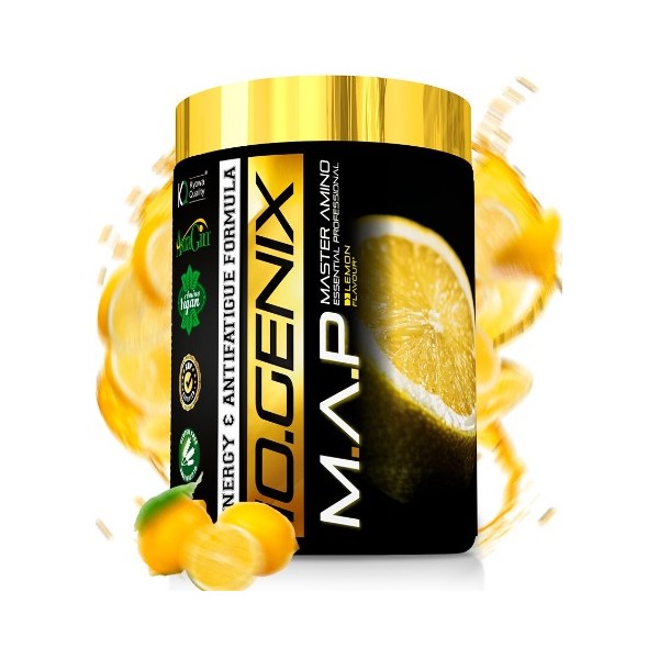 M.A.P Master Amino Essential Professional de IO.Genix es un suplemento en polvo que contiene una combinación maestra de 8 aminoácidos esenciales con calidad Kyowa®, con Astragin® y vitamina B6, con el fin de ser el soporte ideal para deportistas que sufren un intenso desgaste muscular.
