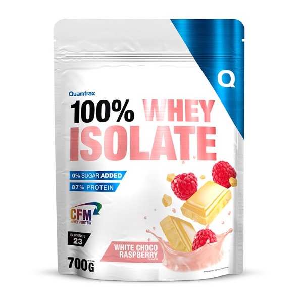 Whey Protein Isolate de Quamtrax Nutrition es un suplemento proteico en polvo que contiene 100% de aislado de proteína de suero de leche obtenido por microfiltración de flujo cruzado con una disolución y unos sabores inigualables.