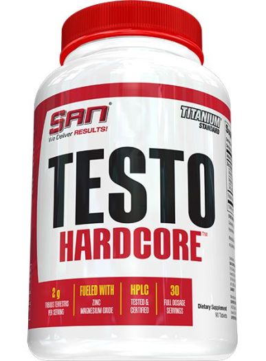 Testo Hardcore de SAN Nutrition es un suplemento en tabletas que contiene una fórmula con ZMA y tribulus terrestris diseñada para potenciar de forma natural la producción de testosterona.