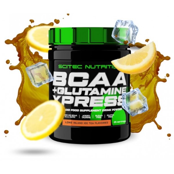 BCAA + Glutamine Xpress de Scitec Nutrition es un suplemento en polvo con un excelente sabor a kiwi, melón o albarico, que te proporciona una mezcla de BCAAs y glutamina en una proporción 1:1 y potenciada con taurina.