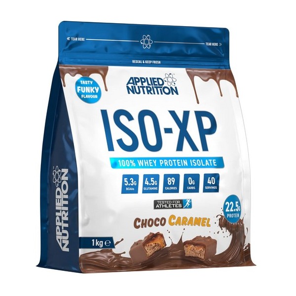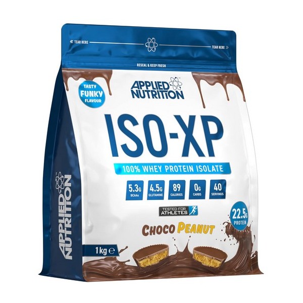 ISO-XP de Applied Nutrition es un suplemento en polvo que contiene el 100% de aislado de proteína de suero de la más alta calidad y ahora con los sabores más exclusivos del mercado: choco bueno, choco caramelo, choco coco, choco candies, choco peanut, chono honeycomb y huevo de crema.