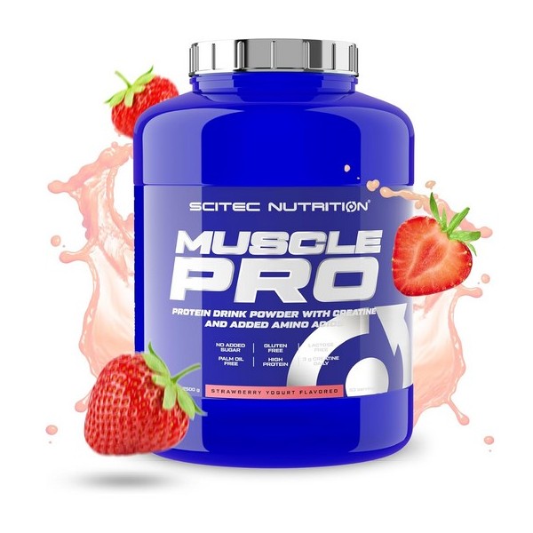 Muscle Pro de Scitec Nutrition es un suplemento en polvo que tiene una proteína de liberación secuencial que combina la proteína de soja, el concentrado de proteína de suero y la caseína micelar, reforzado con 3,42 g de monohidrato de creatina y 1,1 g de aminoácidos adicionales por dosis.