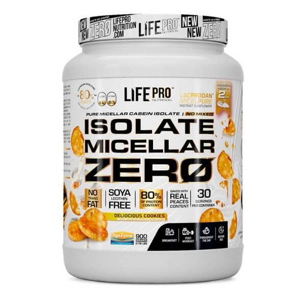 Isolate Micellar Zero de LifePro Nutrition es un suplemento en polvo formulado con aislado de caseína micelar (Lacprodan Micelpure Instant), sin ningún tipo de mezcla de otra fuente proteica.