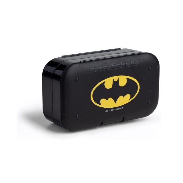 El pastillero para cápsulas creado por Smartshake con licencia oficial de DC Comics, es la forma más inteligente y moderna de llevar y organizar tus suplementos. Este pastillero dispone de dos compartimentos desmontables e independientes para guardar todas tus pastillas y organizarlas de la forma adecuada. Tiene las esquinas de almacenamiento redondeadas para un fácil acceso a tus pastillas.