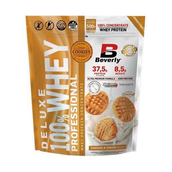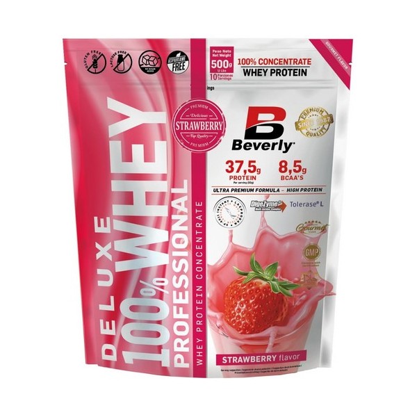 Deluxe 100% Whey Professional de Beverly Nutrition es una fórmula que contiene concentrado de proteína de suero de leche de la más alta calidad, con un alto valor biológico, que contiene todos los aminoácidos esenciales y con una excelente biodisponibilidad y digestibilidad.