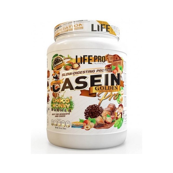 Casein Pro Golden de LifePro Nutrition es un suplemento en polvo que contiene el 100% de concentrado de proteína de leche (80% caseina micelar y 20% suero de leche), una de las mejores proteínas de lenta digestión del mercado, que además está enriquecida con el complejo multienzimático DigeZyme®.