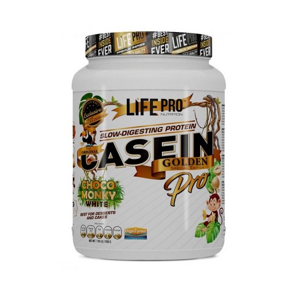 La principal característica de Casein Pro Golden es que se digiere de manera mucho más paulatina y lenta en comparación con otro tipo de proteínas. Se trata de la fuente de proteína más recomendada para periodos de ayuno o para tomar por la noche antes de dormir y para lograr un gran aporte de saciedad al consumirla (debido a las micelas y el tiempo que pertenece en el estómago).